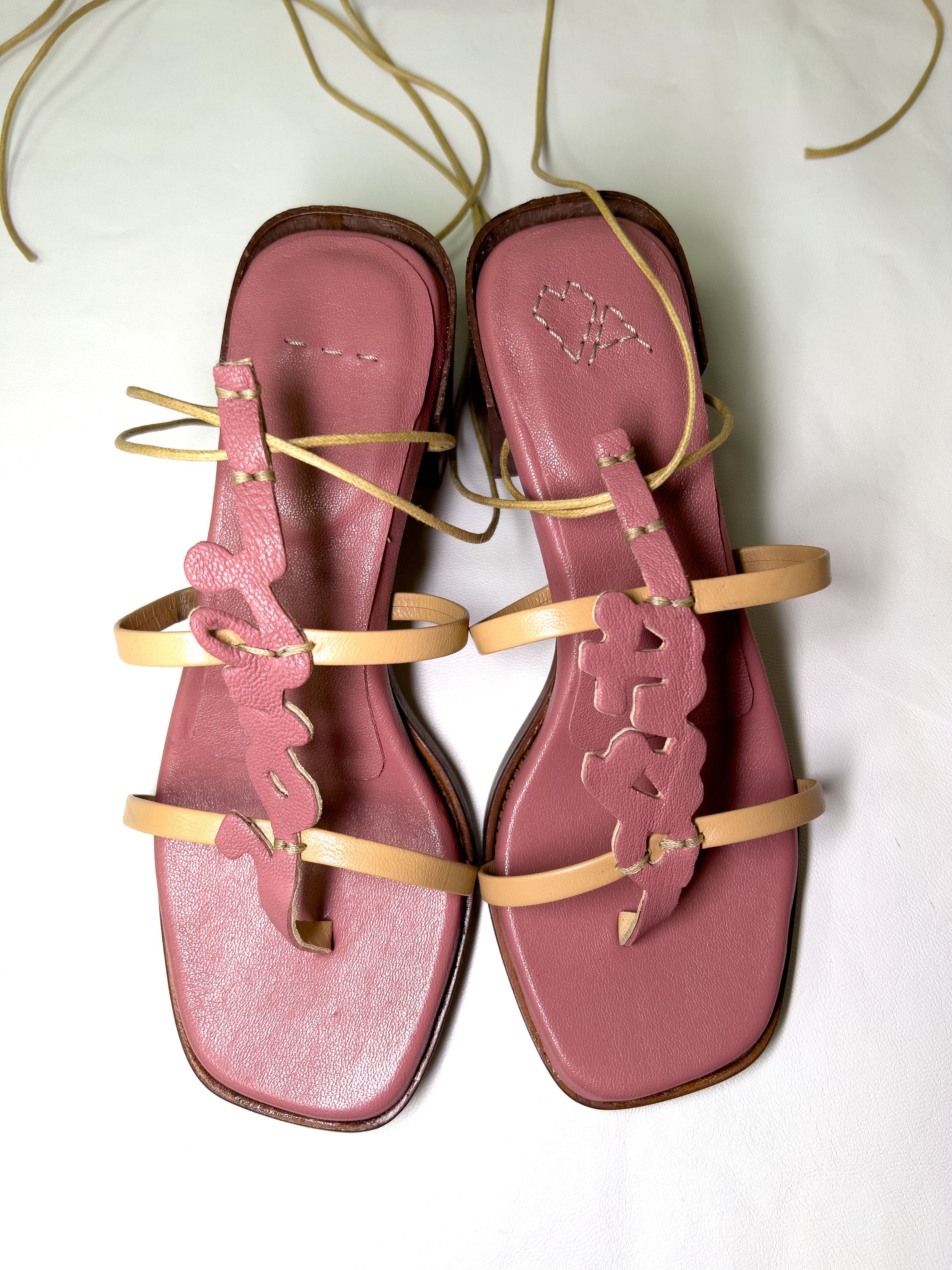 - Stile artigianale: Ogni sandalo è curato come una piccola opera d’arte, in ogni ricamo e cucitura, realizzati rigorosamente con ago e filo.