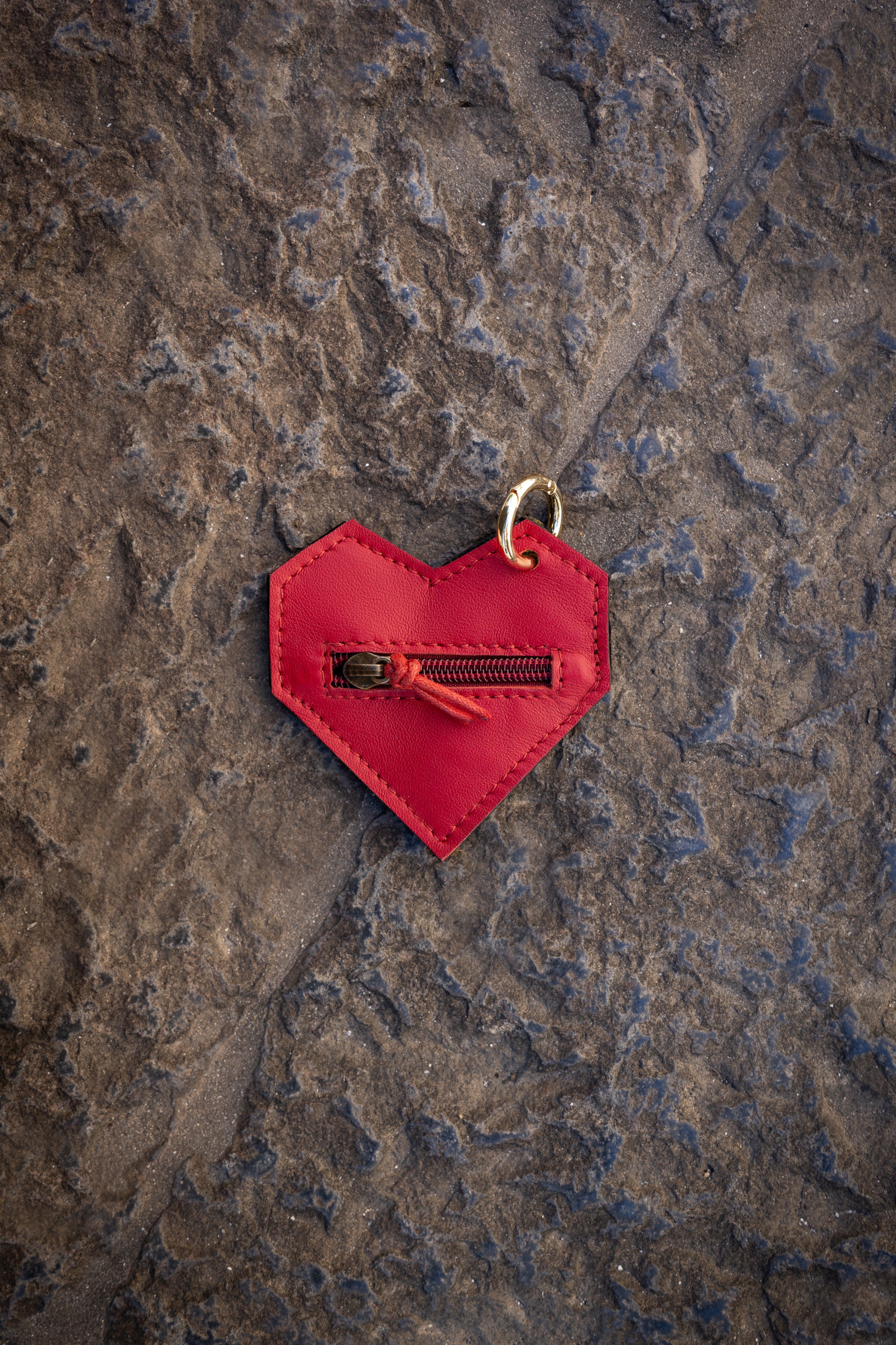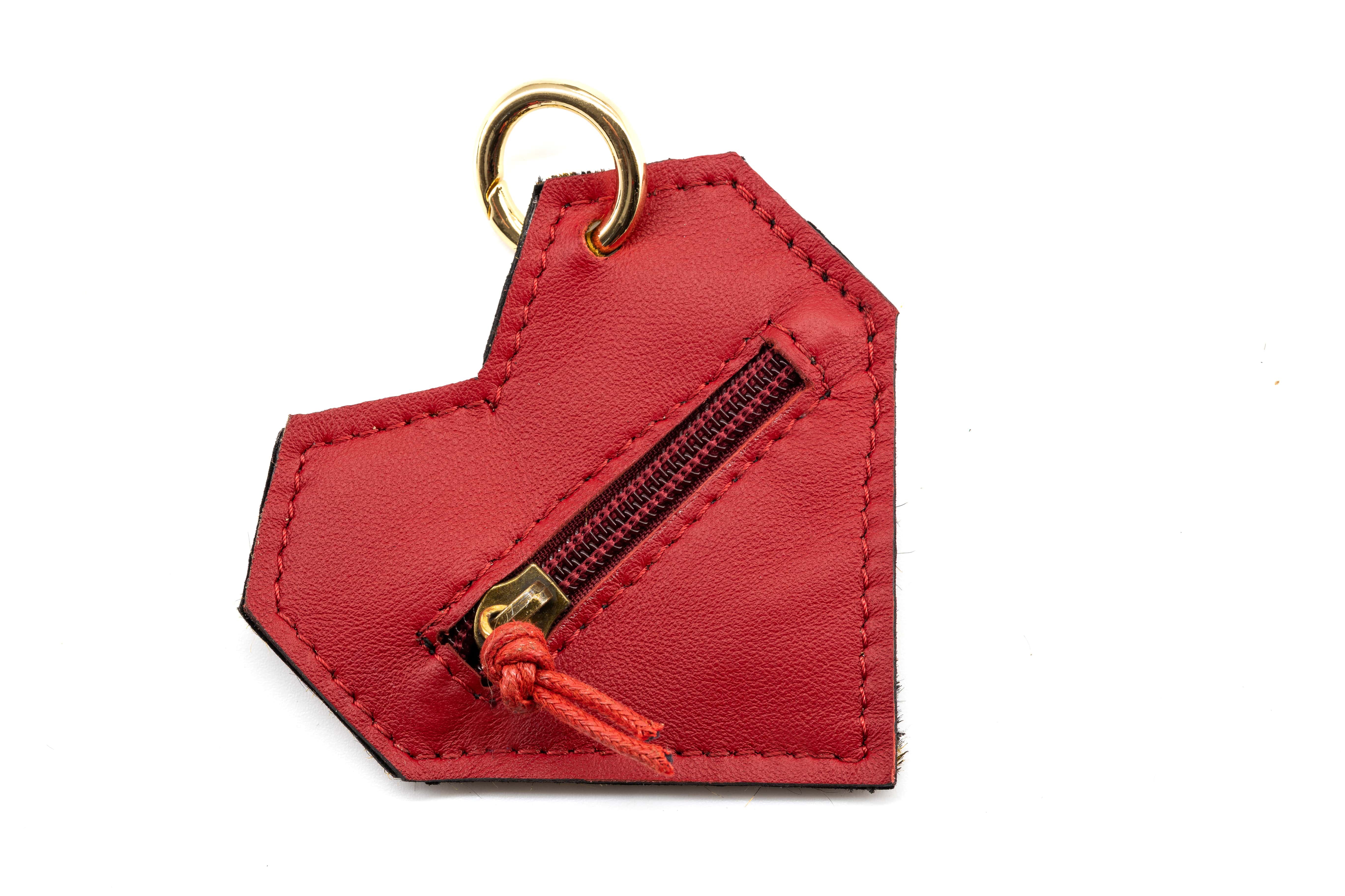 Un piccolo capolavoro di design: questo portachiavi a forma di cuore è realizzato in autentico cavallino e pelle di vitello e ha un super taschino con zip sul retro, ideale per nascondere i tuoi piccoli oggetti segreti